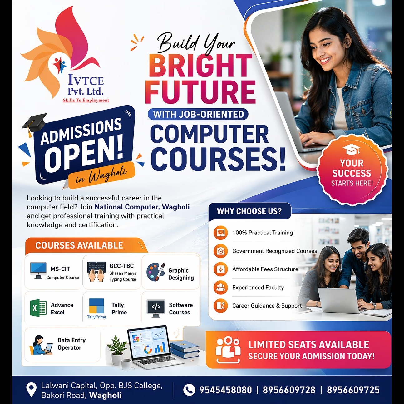 #AdmissionsOpen #ComputerCourses #Wagholi #CareerGrowth #IVTCE #SkillDevelopment #JobOrientedCourses #FutureReady
