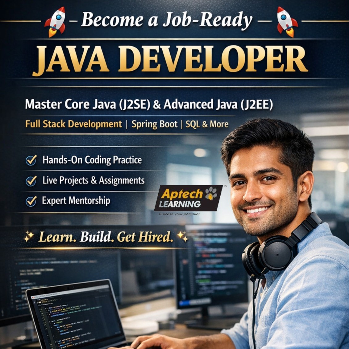 You will gain in-depth knowledge of Core Java (J2SE) and Advanced Java (J2EE) along with Full Stack Development technologies, including Spring Boot, SQL, and modern development practices. The training is completely hands-on, helping you build confidence through coding, assignments, and live projects.