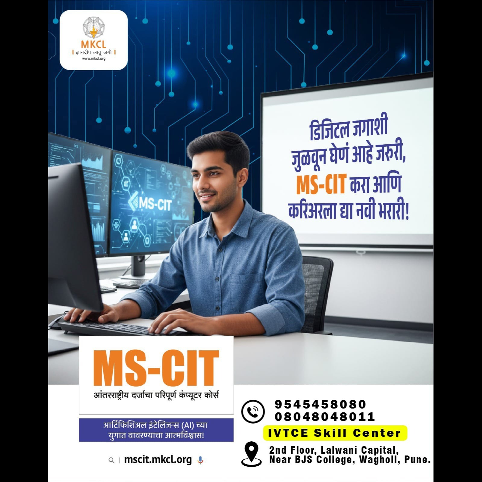 At IVTCE OPC Pvt. Ltd. in Wagholi Pune, the MSCIT program follows the official curriculum prescribed by MKCL, but the teaching goes beyond simply completing modules. Every topic — from basic computer operations to internet usage, MS Office tools, and digital transactions — is explained step by step. What makes MSCIT valuable today is its real-life relevance.