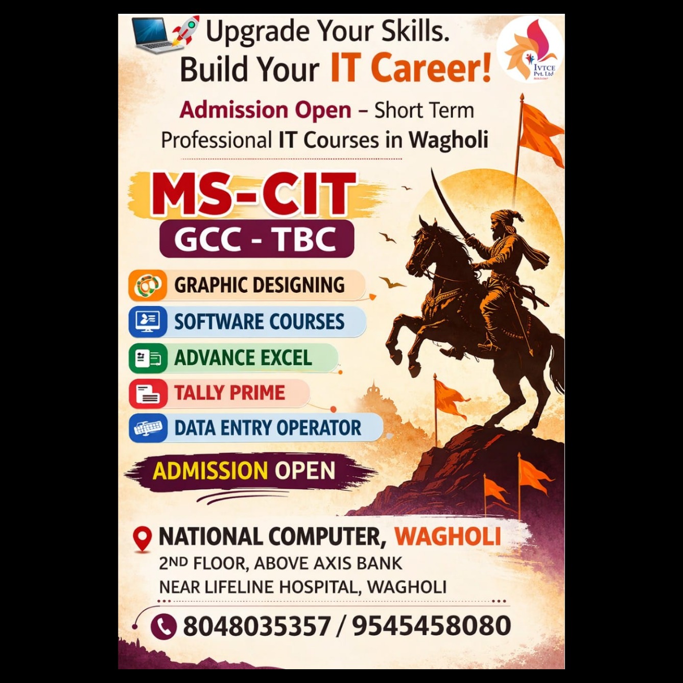 Are you looking to kickstart your career in the digital world? National Computer, Wagholi offers short-term, high-impact professional IT courses designed to give you the practical skills needed in today’s job market. Whether you are a student, a job seeker, or a professional looking to upskill, we have the right program for you.